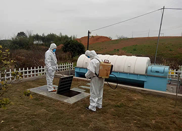2021年12月22日科然環(huán)境運(yùn)維組員工為號(hào)召國家防控疫情政策,對各個(gè)終端和管網(wǎng)的污水池進(jìn)行全面的清掏、消殺工作。運(yùn)維組消殺人員配有專業(yè)的防護(hù)服、手套、口罩以及專業(yè)的消殺工具。